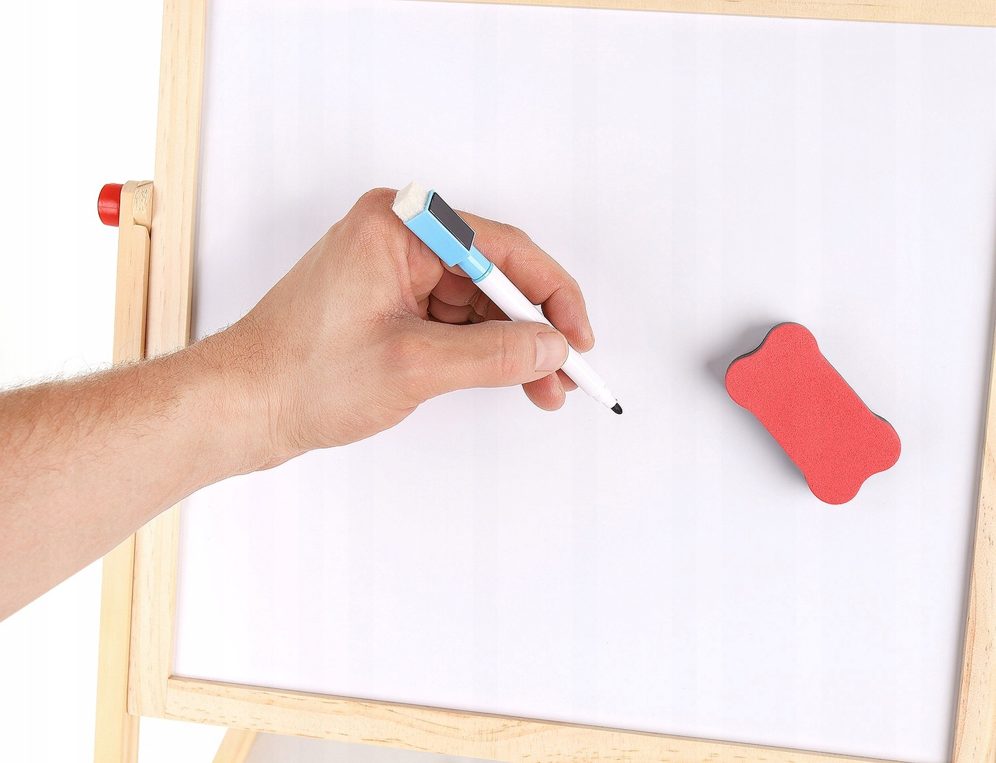 A tábla fekete felére krétával, a másik fehér felére táblafilccel lehet rajzolni.